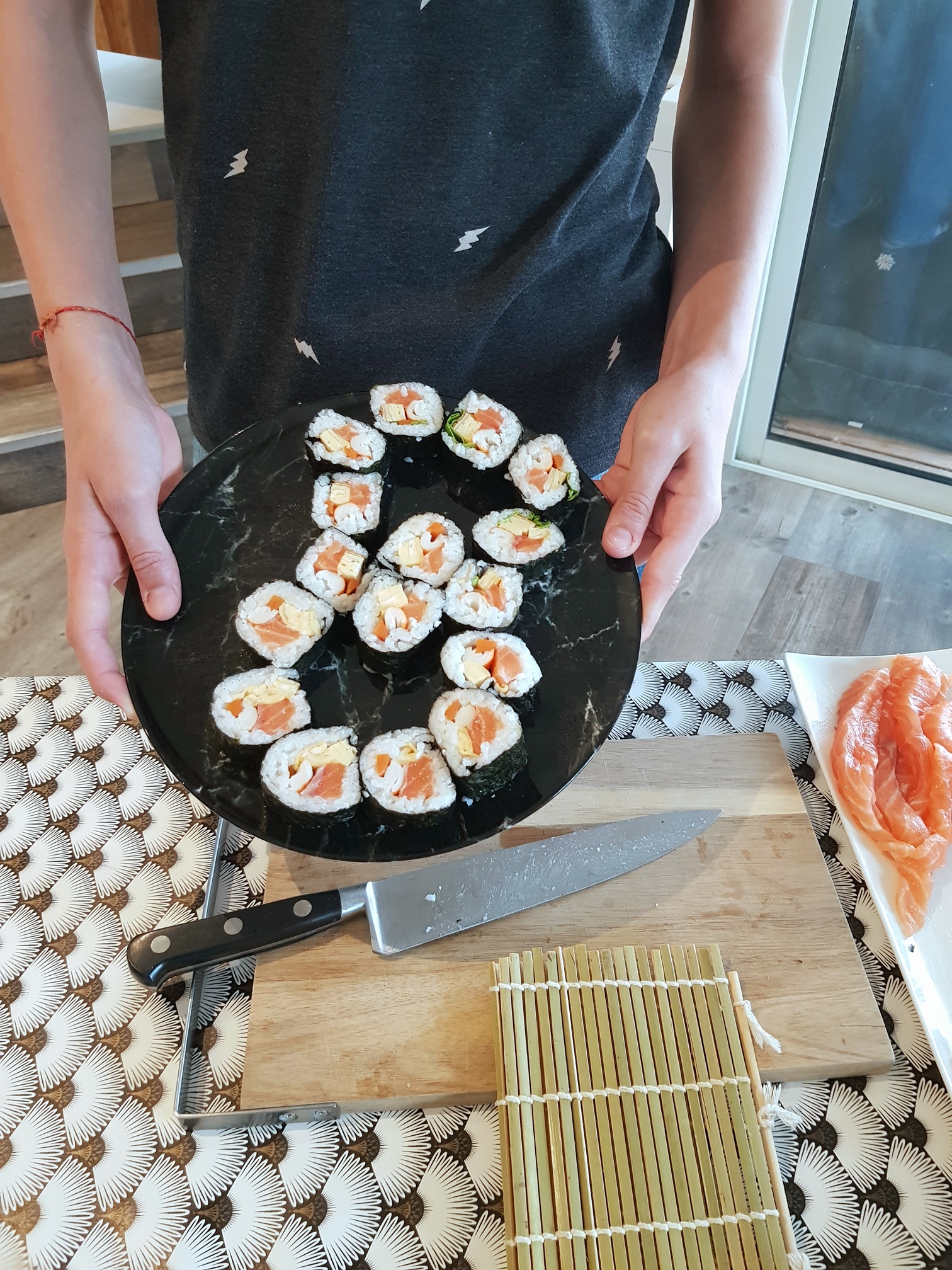 Je suis vraiment ravie d’avoir pu participer aujourd’hui. L’histoire des sushis était passionnante et la partie pratique était très bien expliquée. Mon fils a pu beaucoup pratiquer et apprendre.